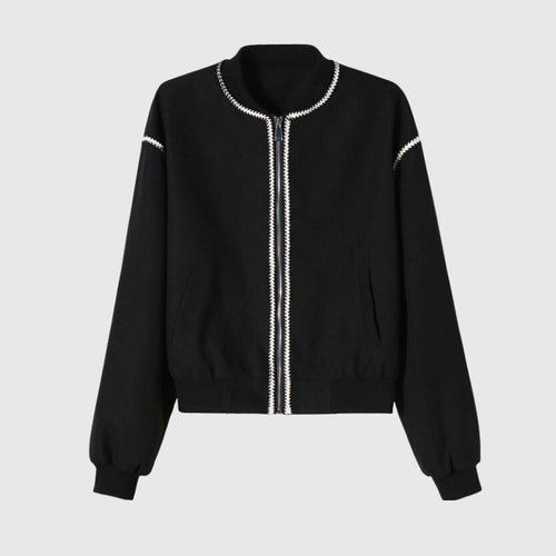 Kurz geschnittene Varsity-Jacke mit PU-Ärmeln -