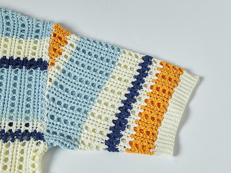 Hollow-Out Zip-Up Knit Polo