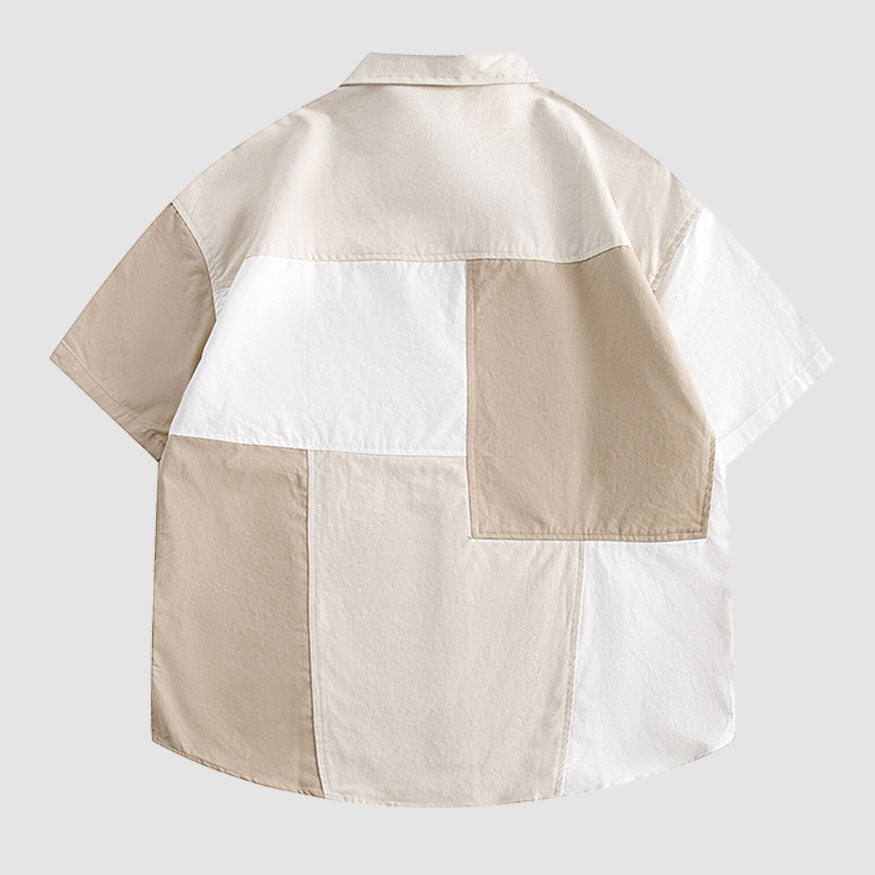 Simple Contrast Patchwork Shirts