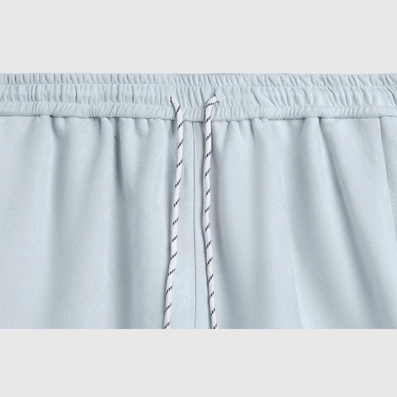 Features: Set, tee, shorts, short sleeves, solid color, drawstring waist, letter embossed design, suede, high waist, wide-leg, racing style, loose.