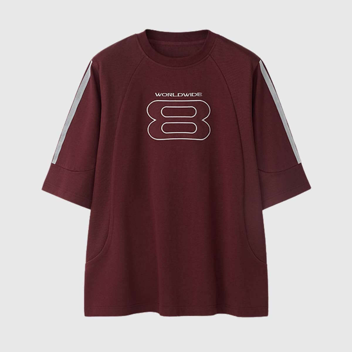 - Features a large "WORLDWIDE 8" print for a striking, urban look.