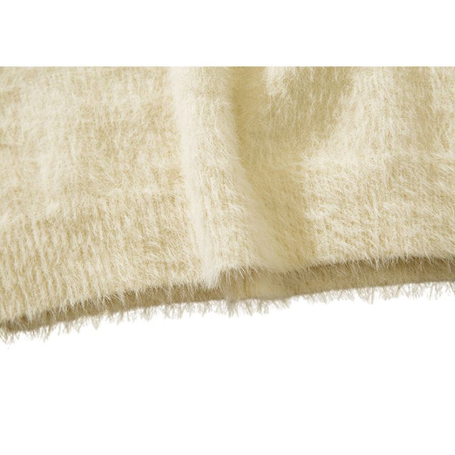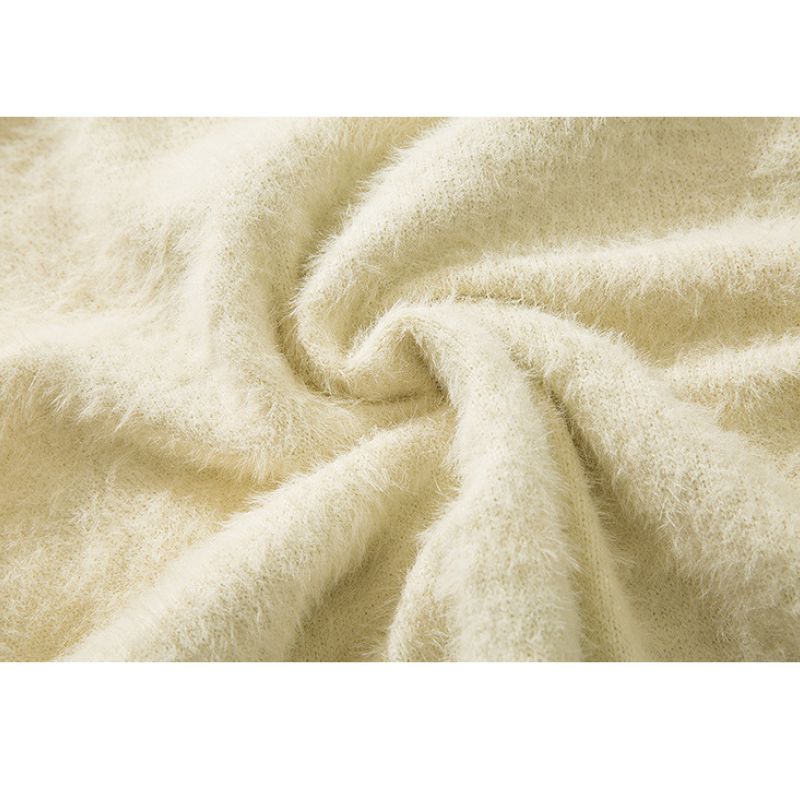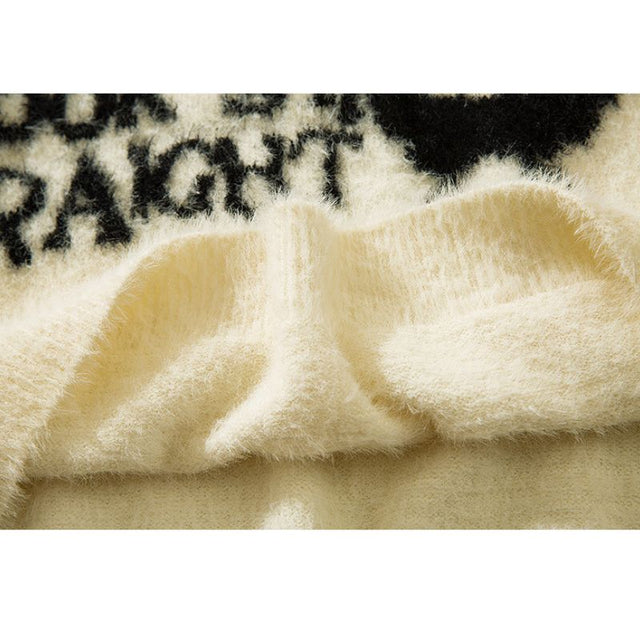 Características: Jersey, cuello redondo, manga larga, diseño bordado de muñeca de dibujos animados, flocado, corte relajado, tejido jacquard, conjuntos de pareja.